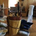 It is made out of a yellow colored waxed canvas fabric and has finished edges with brown leather. It closes with a brown leather string. The top flap keeps your brushes from falling out. The snaps can be pulled open so you can have a better overview on whats in it.